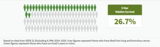 Lung cancer has a poor prognosis; over half of people diagnosed with lung cancer die within one year of diagnosis and the 5-year survival is less than 18%.